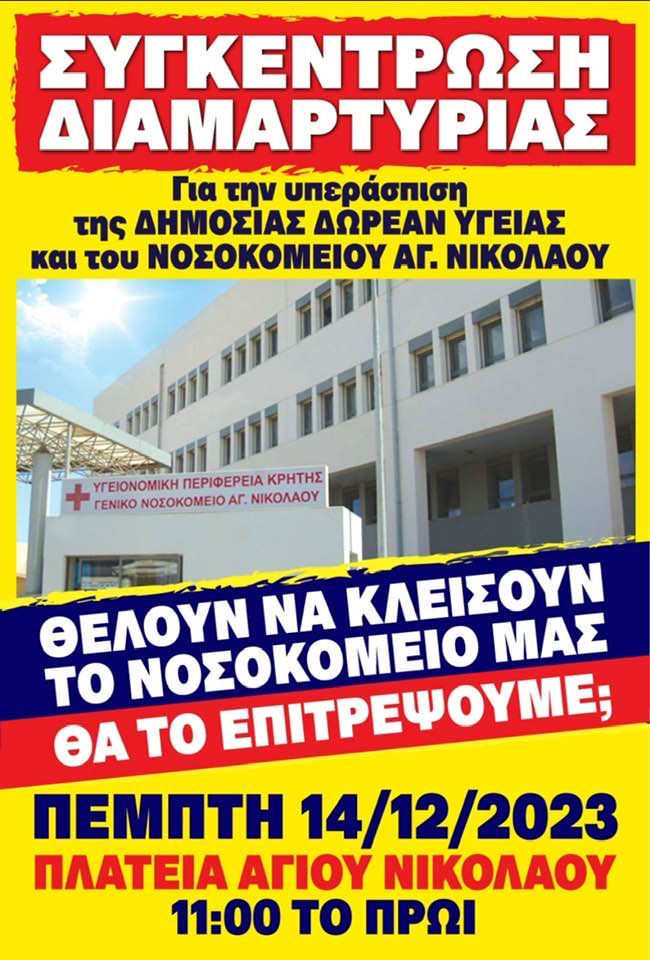 Για την συγκέντρωση διαμαρτυρίας την Πέμπτη 14 Δεκεμβρίου στον Άγιο Νικόλαο