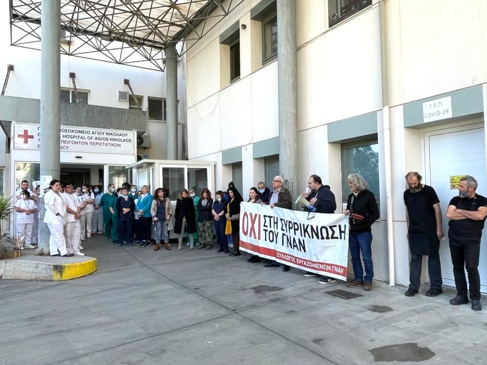 Από την συγκέντρωση του Συλλόγου Εργαζομένων Γενικού Νοσοκομείου Αγίου Νικολάου (ΓΝΑΝ) στο ΓΝΑΝ. Συμμετοχή της Ένωσης Νοσοκομειακών Ιατρών Λασιθίου και ομιλίες των προέδρων των δύο σωματείων.
