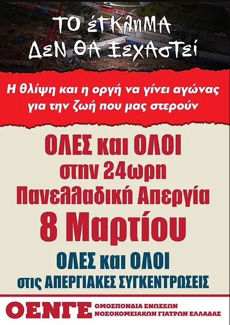 Βάζουμε στο στόχαστρο τους πραγματικούς ενόχους: Το κράτος των λίγων, την πολιτική της εμπορευματοποίησης και των ιδιωτικοποιήσεων που υπηρετούν διαχρονικά όλες οι κυβερνήσεις. Την πολιτική που λογαριάζει την υγεία, την ασφάλεια και τη ζωή μας, τα δικαιώματα και τις ανάγκες μας, σαν κόστος από τη μία και σαν πεδίο κερδοφορίας των επιχειρηματικών ομίλων από την άλλη.